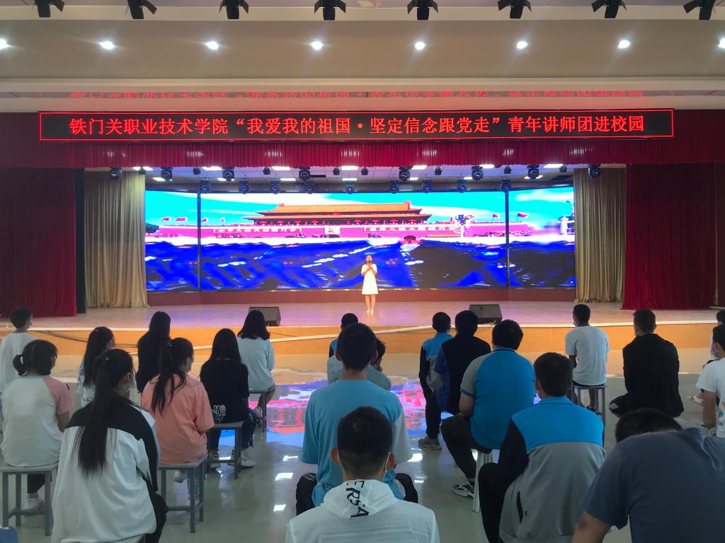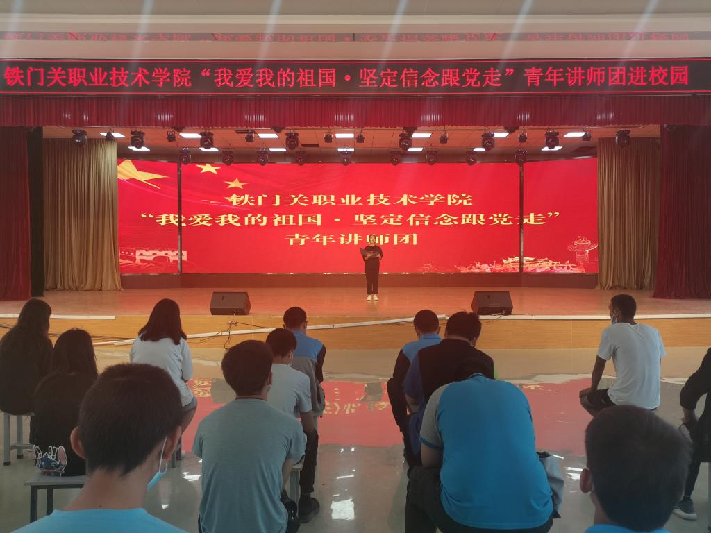 为庆祝中国共产党成立100周年,深入贯彻落实中央党史学习教育动员大会精神,引导学生从党的百年伟大奋斗历程中汲取继续前进的智慧和力量。6月23日,Beat365中文官方网站青年讲师团成员在技能训练中心四楼多功能厅开展“我爱我的祖国 ·坚定信念跟党走”主题宣讲活动,各系部师生代表共300余人参加本次活动。