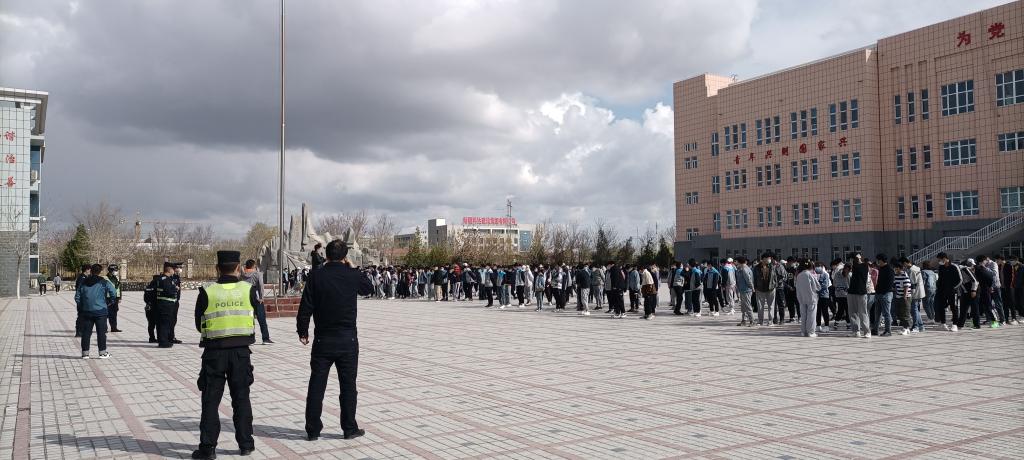 17:00整,伴随着一阵急促的警报声,各楼层负责人就近到达指定位置,任课教师引导班级学生快速疏散,学生沿着指定路线有序撤离到了校园操场的安全区域。随即班主任清点人数,汇报给本次演练总指挥。本次演练自警报响起至集结完毕共用时2分钟。活动结束后辖区警务站杨站长对本次消防安全演练做总结发言。