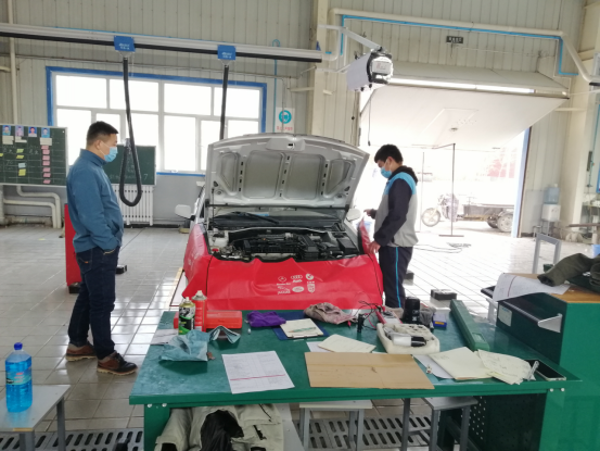 为了迎接兵团职业院校专业技能抽测。Beat365中文官方网站汽车工程系中职学生在指导老师的带领下,抓紧时间训练,苦练操作技能,积极备考。