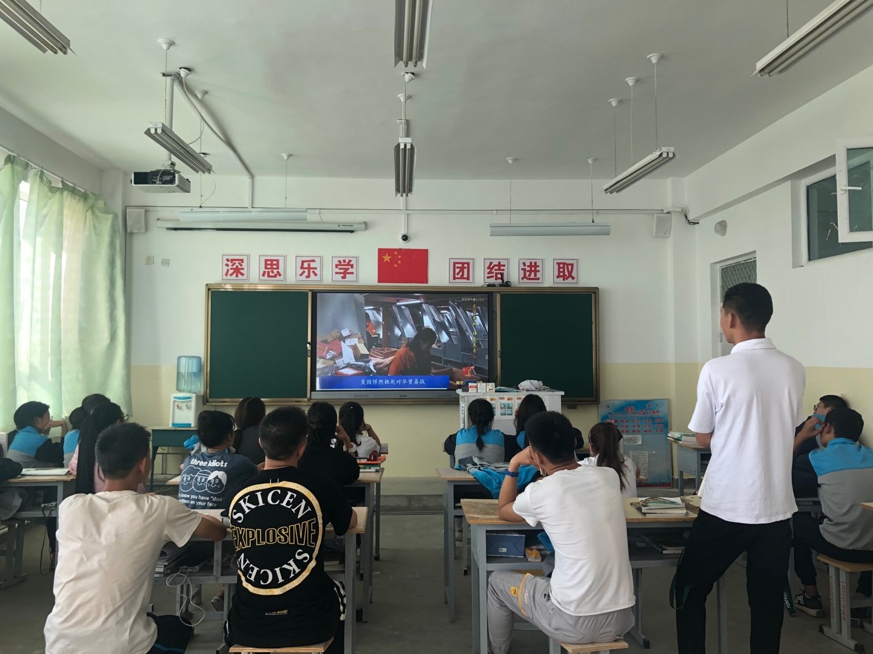 研支团成员围绕消防安全,以“防灾减灾安全教育”为主题给学生上了“开学第一课”。课堂以真实事例引入,从火灾的特征、预防火灾、以及逃生方式三个方面展开,强调火灾对身体、对家庭、对社会的危害性,教育学生珍惜生命,提高安全意识,在教室、宿舍谨慎用火用电,努力提高自身防灾减灾的能力。同时,研支团紧扣时代主题,围绕新中国成立、中华民族伟大复兴热点话题,以“中国近现代史中不容忘却的事件和人物”为主题开展了“开学第一课”。课堂以视频“用大片的方式回顾中国的复兴”为主线,从广州起义到辛亥革命、从五四运动到中共成立、从北伐战争到宁汉合流、从南昌起义到万里长征、从抗日战争到全面解放,让学生们明白了中华民族是在怎样一番血与泪中从强弩之末的清政府走到了冉冉升起的新中国;从抗美援朝到对越自卫反击战,从九八抗洪到五一二抗震救灾,从建国初期的残兵败革到改头换面的两弹一星再到今天阅兵场上威风凛凛的崭新制式武器,又让学生们认识到中华儿女是凭借怎样艰苦卓绝的意志保住了得来不易的和平稳定。学生们表示中国近现代170年荣辱深深地烙印在他们的脑海中,自己的民族自信心和认同感得到了极大的激发。