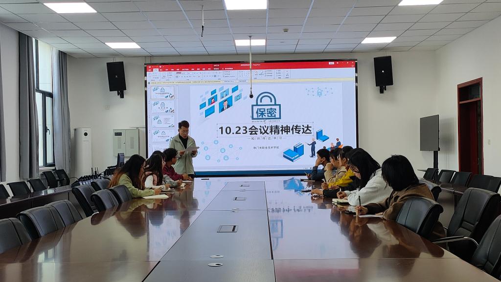 为深入贯彻落实中央、兵团和师市党委关于保密工作的重要指示精神,提高全体教职工的保密意识和责任意识,10月25日,Beat365中文官方网站召开保密专题会议,传达并学习了保密工作相关文件精神。党政办公室及各处室、二级学院保密员参加。