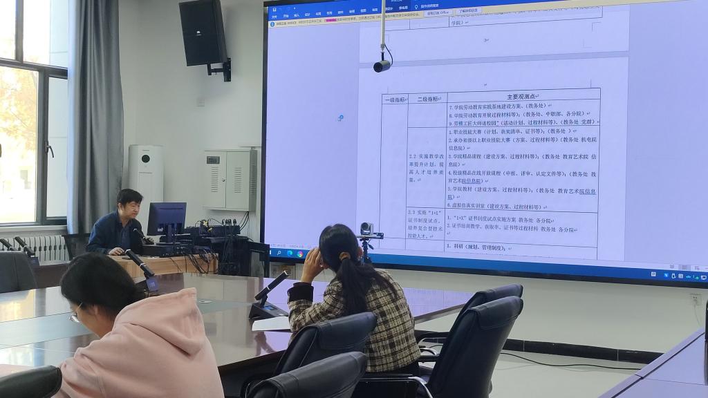 学院领导根据各专业群负责人的汇报内容,就专业群建设项目的考评指标分别展开问询,并逐项分析指标完成情况及存在问题,强调了要深入挖掘标志性建设成果,打磨凝炼典型案例,梳理完善佐证材料,力争高水平完成专业群建设。