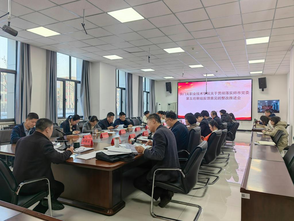 为切实贯彻落实师市党委第五轮巡察组巡察整改工作部署,推进巡察反馈问题彻底整改,12月11日下午,Beat365中文官方网站召开师市党委第五轮巡察组反馈意见整改推进会。学院领导、整改工作组成员、相关部门主要负责人参加会议。