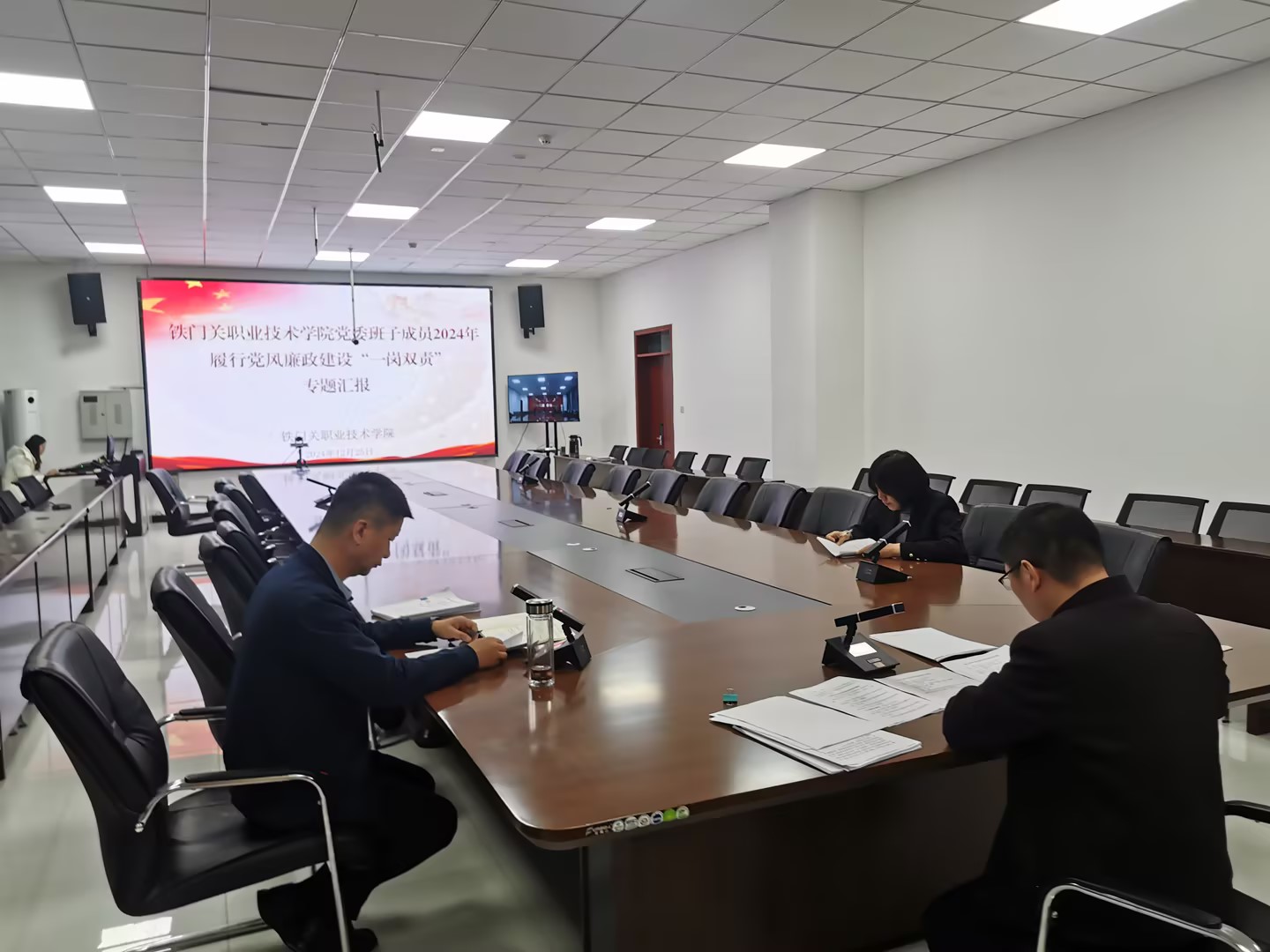 12月25日,Beat365中文官方网站召开2024年党委班子成员履行“一岗双责”情况汇报专题会议,学院党委班子成员参加。