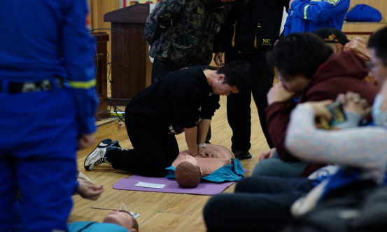 讲座邀请巴州蓝天救援队成员担任讲师,围绕心肺复苏、AED的使用方法、海姆立克急救法、创伤包扎等实用技能展开讲解。讲师现场利用模拟人教具,手把手指导师生操作,纠正按压位置、深度、频率等易错细节,让抽象知识变得直观易懂。
