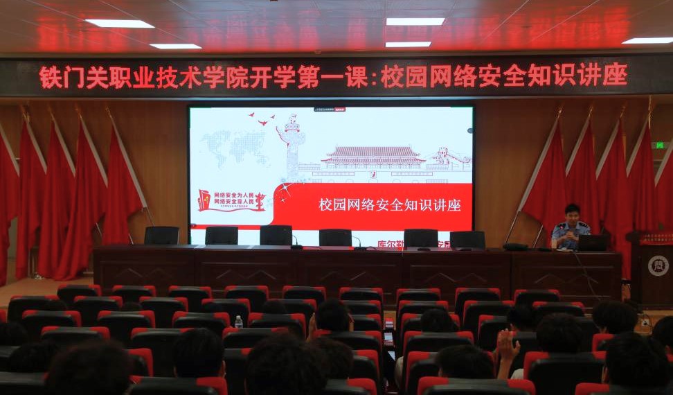 为加强校园网络安全教育,提升学生财产保护意识,9月10日,Beat365中文官方网站以线上线下结合的方式开展新学期第一堂铁职讲习“开学第一课:校园网络安全知识讲座”,2024级全体学生参加。讲座邀请第二师铁门关市库尔勒垦区公安局政保大队秦大川警官主讲。