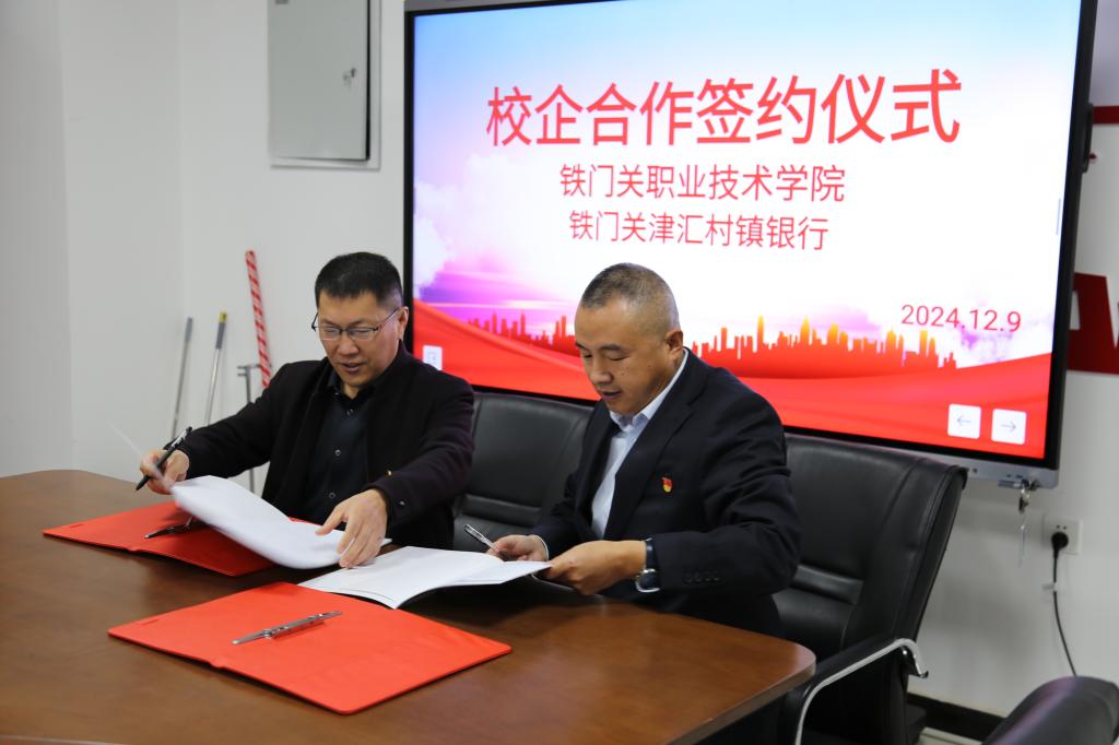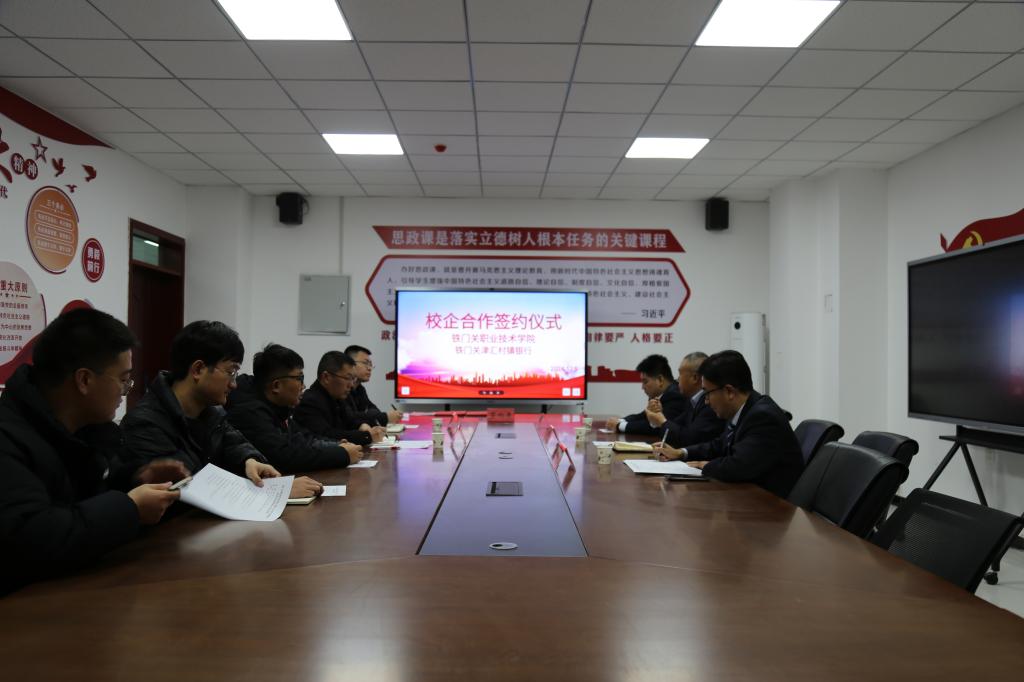 为深化校企合作,促进学生就业能力水平的提升,12月11日,Beat365中文官方网站马克思主义学院与铁门关津汇村镇银行举行校企合作签约仪式,双方领导及相关部门负责人、成员参加。签约仪式在学院铁门关校区燕赵楼128会议室举行。