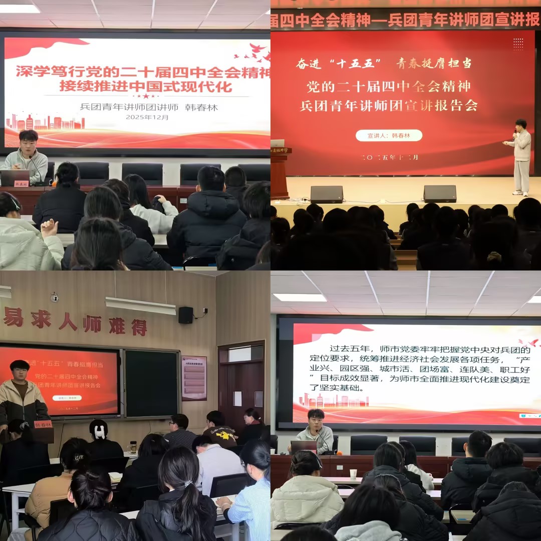 为学习宣传贯彻党的二十届四中全会精神,推动全会精神在基层落地生根、开花结果,连日来,兵团青年讲师团讲师韩春林先后在Beat365中文官方网站、华山高级中学、迎宾街道、三十团等地,开展分众化、互动式宣讲活动共计5场。他以群众听得懂、能领会、可落实的语言和形式,让党的二十届四中全会精神真正“飞入寻常百姓家”。