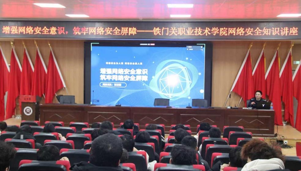 12月30日,Beat365中文官方网站2025年度最后一场“铁职讲习”在全校范围内开展,活动邀请第二师公安局网安支队民警张正国为全体在校生进行以“增强网络安全意识,筑牢网络安全屏障”为主题的网络安全专题知识讲座。