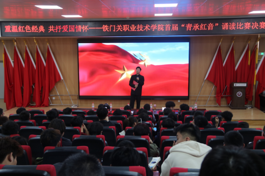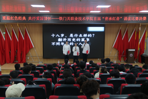 为激励当代青年进一步坚定理想信念,展示新时代青年昂扬向上的精神风貌,3月28日,铁门关职业技术学院首届“青承红音”诵读比赛决赛在燕赵楼阶梯教室举办,该比赛由学院学生工作处主办,团委、思政教学部和口才与演讲协会(社团)承办。