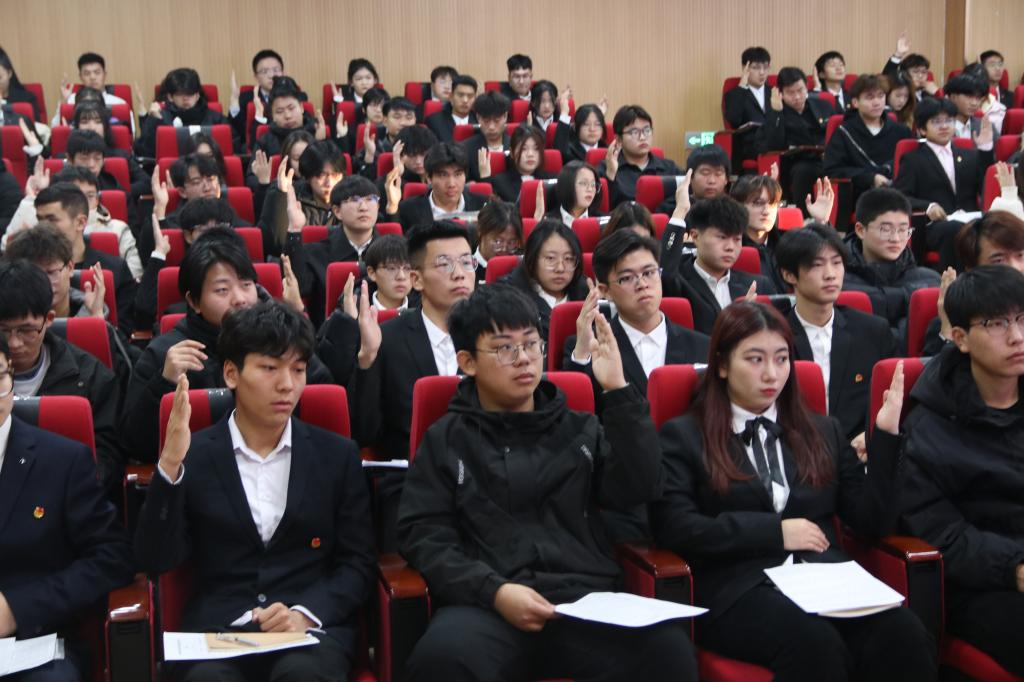 新当选的团委书记时乐然表示,将不负重托,带领广大团员青年努力践行社会主义核心价值观,积极投身于学院的发展建设,勇做担当民族复兴大任的时代新人,为推动学院高质量发展贡献青春力量