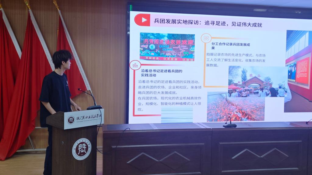 “走进共青团农场,我们深入连队和职工家庭,亲眼见证了兵团人如何将兵团精神落实到日常生产生活中。”23级党务工作2班学生杨林源分享道。24级油气储运技术2班学生崔涵童则谈道:“在走访过程中,我们运用课堂上学到的矛盾分析法来观察基层治理,发现很多看似复杂的问题,其实只要站稳人民立场就能找到解决方向。”