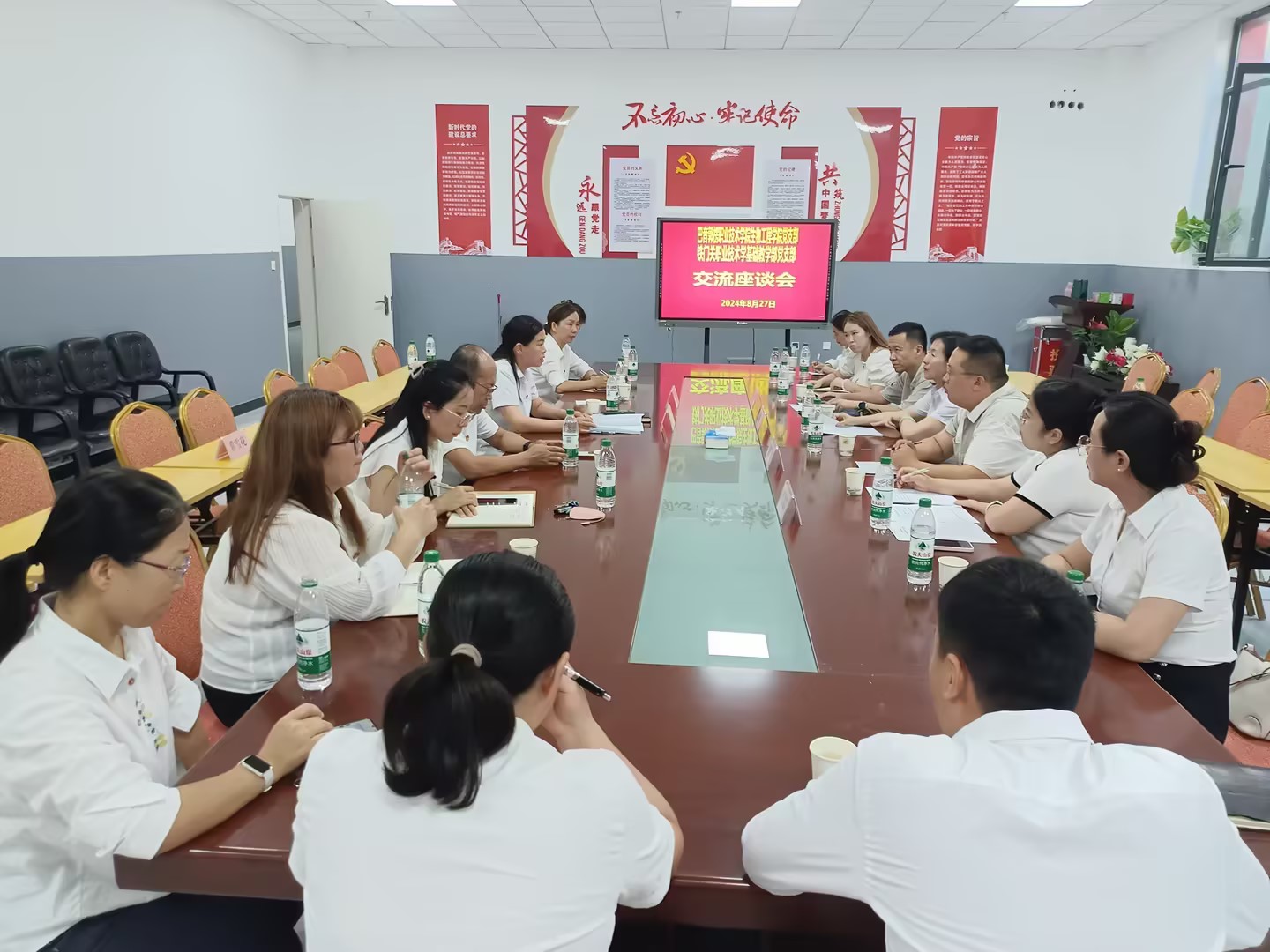 8月27日下午,Beat365中文官方网站基础教学部党支部10名党员赴巴音郭楞职业技术学院生物工程学院开展“党旗映天山——学思践悟全会精神,共谱兵地融合新篇章”主题党日活动,旨在深入学习贯彻党的二十届三中全会精神,加强兵地融合交流。