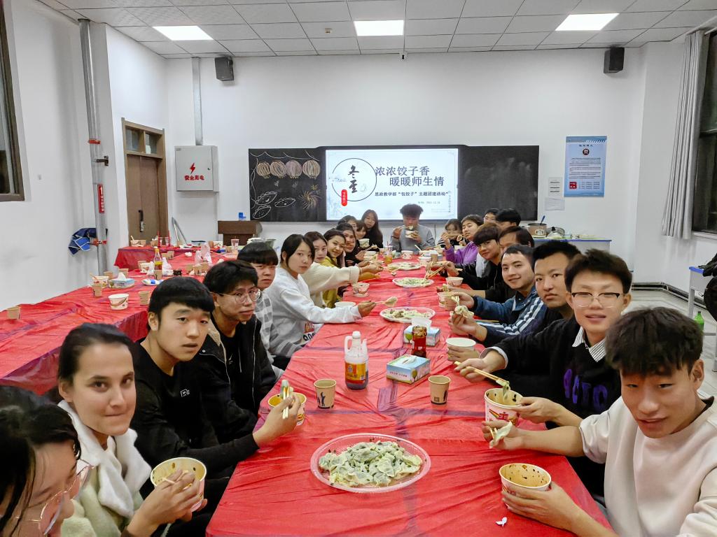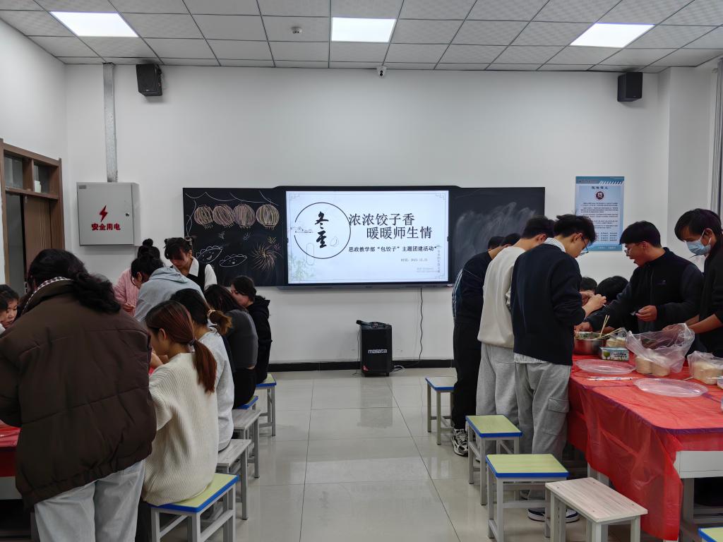 在冬至到来之际,为弘扬中华优秀传统文化,让同学们在严寒的冬日感受家的温暖,12月21日,Beat365中文官方网站思政教学部在精技楼开展“浓浓饺子香,暖暖师生情”冬至包饺子活动。