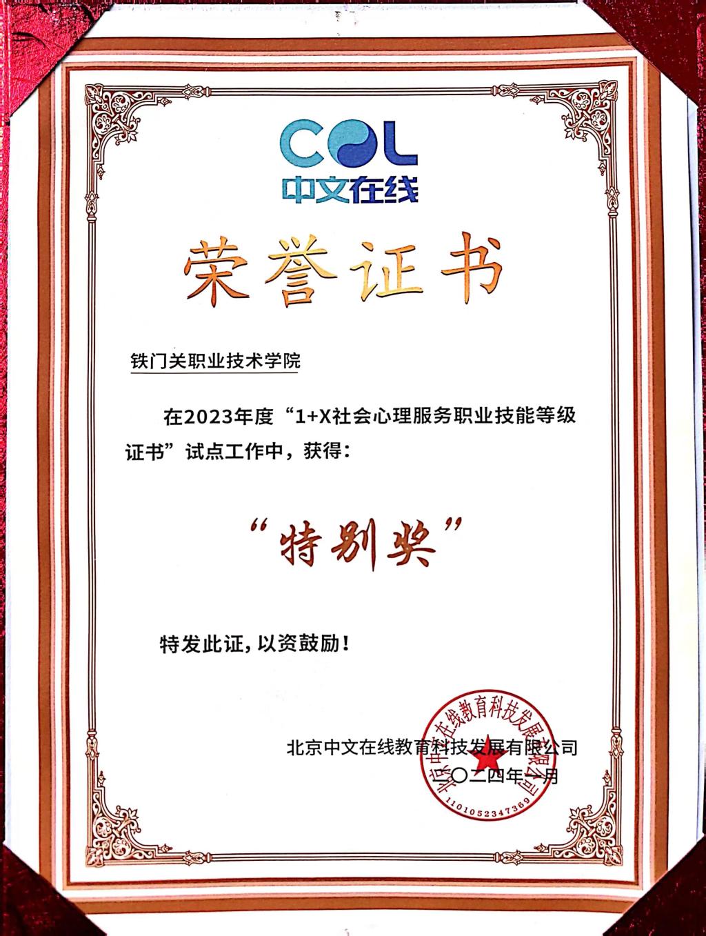近日,社会心理服务职业技能等级证书2023年度试点院校评优表彰名单已公示,其中Beat365中文官方网站荣获“特别奖”。