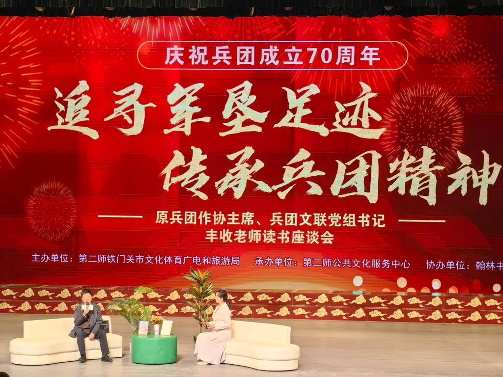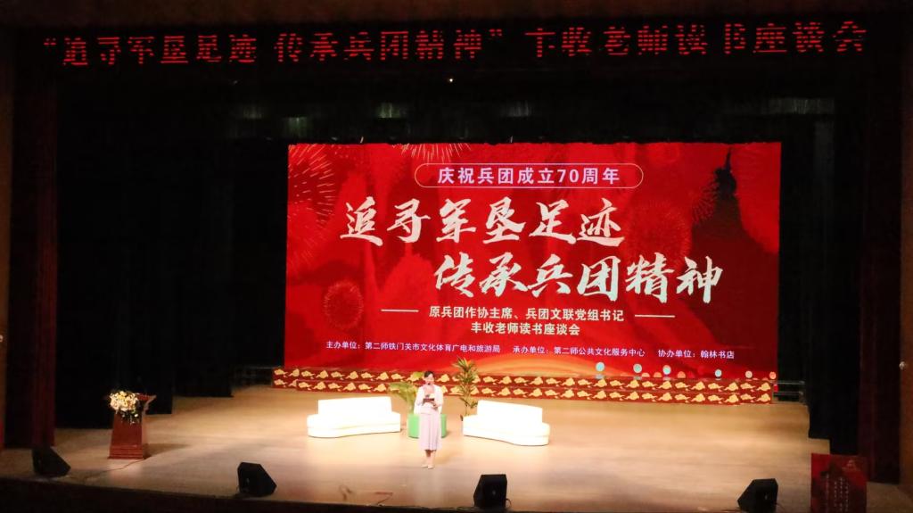 活动伊始,本次活动特邀嘉宾丰收老师结合在兵团的亲身经历,重点分享了《太阳是一颗种子:寻找遗失的可可托海》这部作品。著作从创作到完成倾注了丰收老师的无数心血,历时三年,扎根泥土,贴近英雄,本书讲述了特殊年代可可托海的历史故事。三年里,丰收老师与当地农民、牧民、普通建设者共同生活在一起,休戚与共。用时间书写了新疆大地、兵团历史、深挖共和国发展史,记录了困难时期兵团人不屈不挠的精神,塑造和记录了一代又一代众多真实、可爱的硬汉形象,用文学作品的温度,拯救遗忘,弘扬真善美,讴歌劳动人民的伟大业绩,为新疆各族劳动人民立传,为历史留下珍贵的记忆,这记忆是我们共同的财富,是我们继承前辈遗志继续前进的动力。