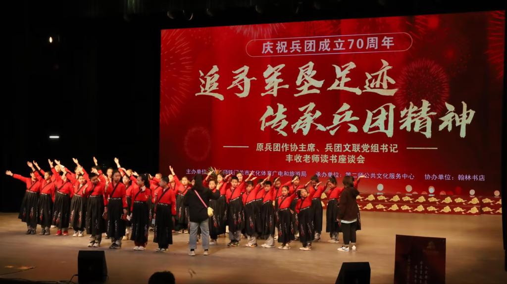 为深入学习贯彻习近平文化思想,庆祝新中国成立75周年,兵团成立70周年。4月7日,Beat365中文官方网站思政教学部党支部组织22级和23级200名师生前往铁门关市群众文化活动中心参加“追寻军垦足迹 传承兵团精神”读书座谈会。