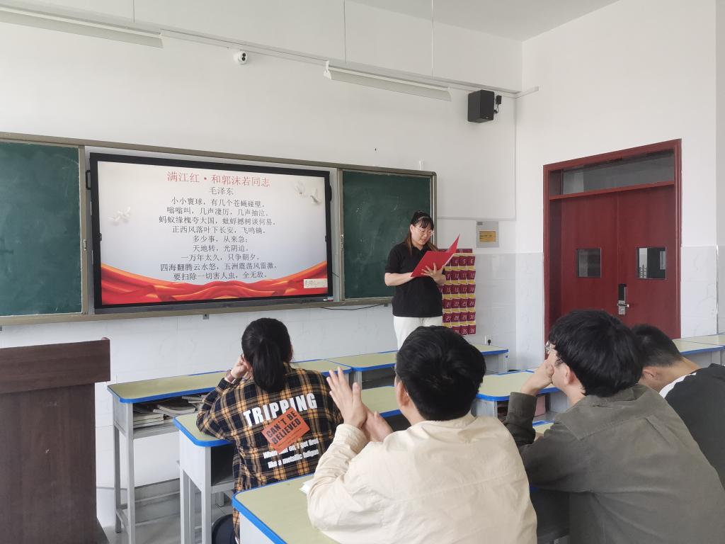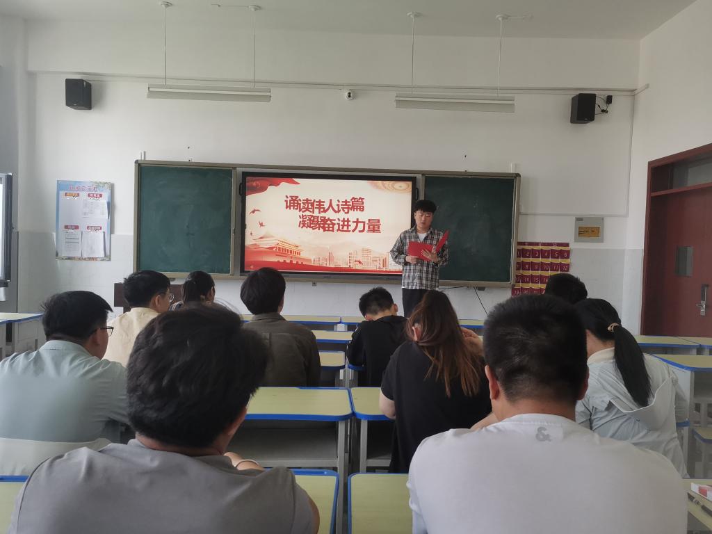 Beat365中文官方网站思政教学部党支部结合专业优势,4月24日下午在燕赵楼421教室组织开展“诵读伟人诗篇,凝聚奋斗力量”主题党日活动,28名党员、入党积极分子及青年教师参加。
