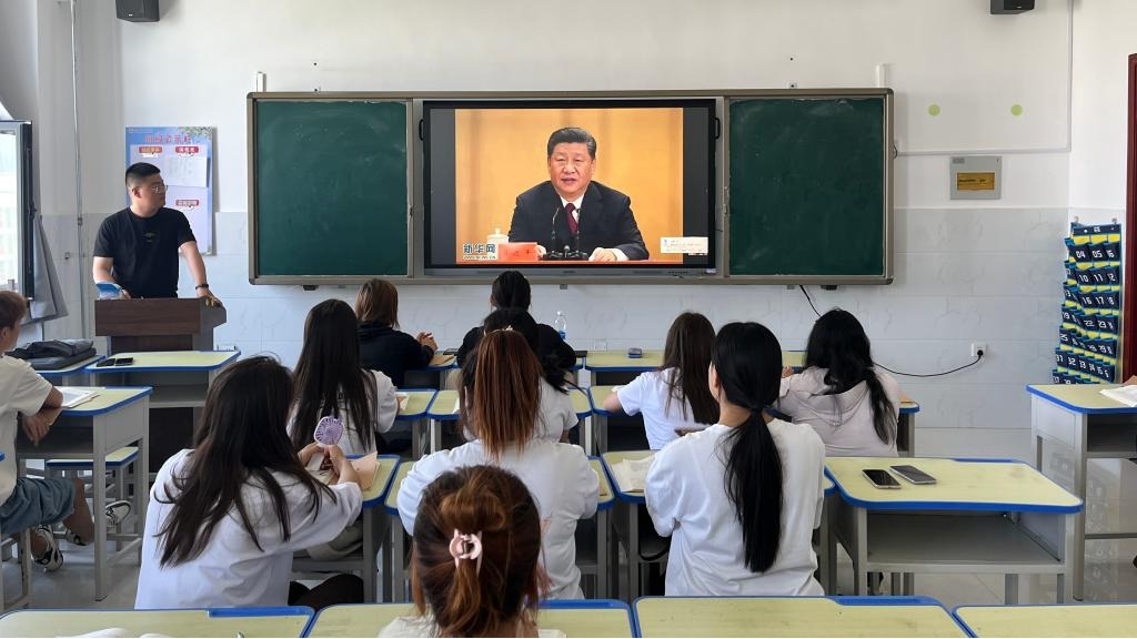 23党务工作1班团支书谢臻表示:“总书记对广大青年寄予厚望和嘱托,让我们倍感振奋和鼓舞。作为兵团高校大学生,我们要认清责任和使命,注重锤炼品德修为,树立正确的道德观念和价值观念,成为爱国爱疆、担当奉献的新时代戍边人。