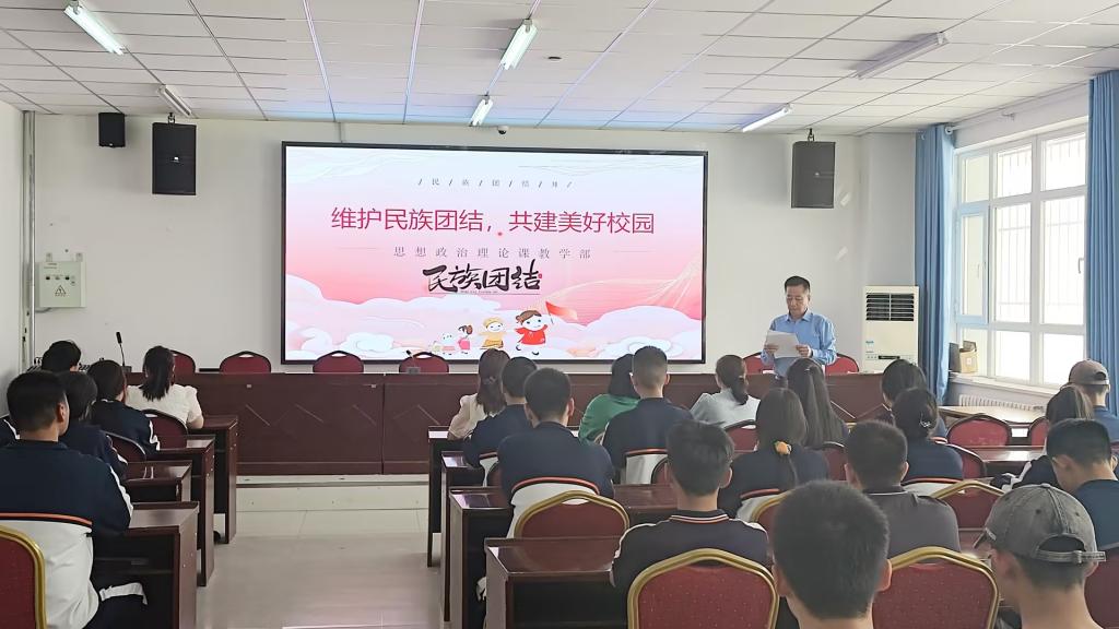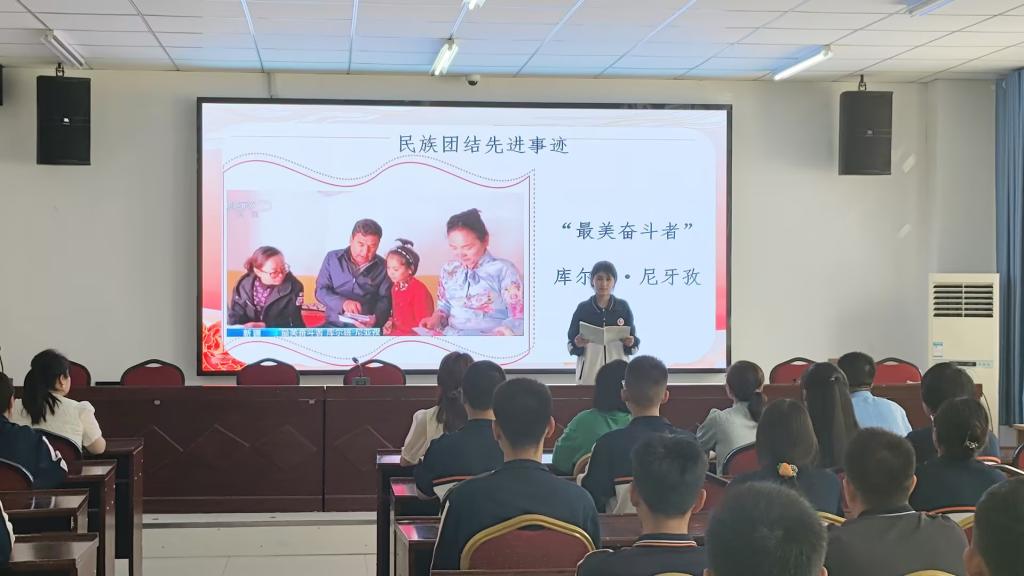 为贯彻落实党的二十大报告中关于民族工作的重要论述,进一步铸牢中华民族共同体意识,激发各民族学生的爱国热情和民族团结意识,积极探索“民族团结教育”融入校园文化的方式,努力培育具有民族团结精神的时代新人。5月16日,Beat365中文官方网站库尔勒校区报告厅正在开展以“维护民族团结,共建美好校园”为主题的民族团结教育月宣讲活动,各专业的50余名学生代表参加了本次活动。