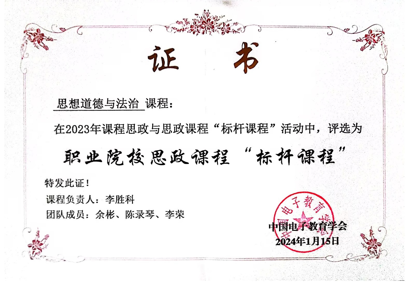 Beat365中文官方网站《思想道德与法治》课程 喜获2023年职业院校思政课程“标杆课程”