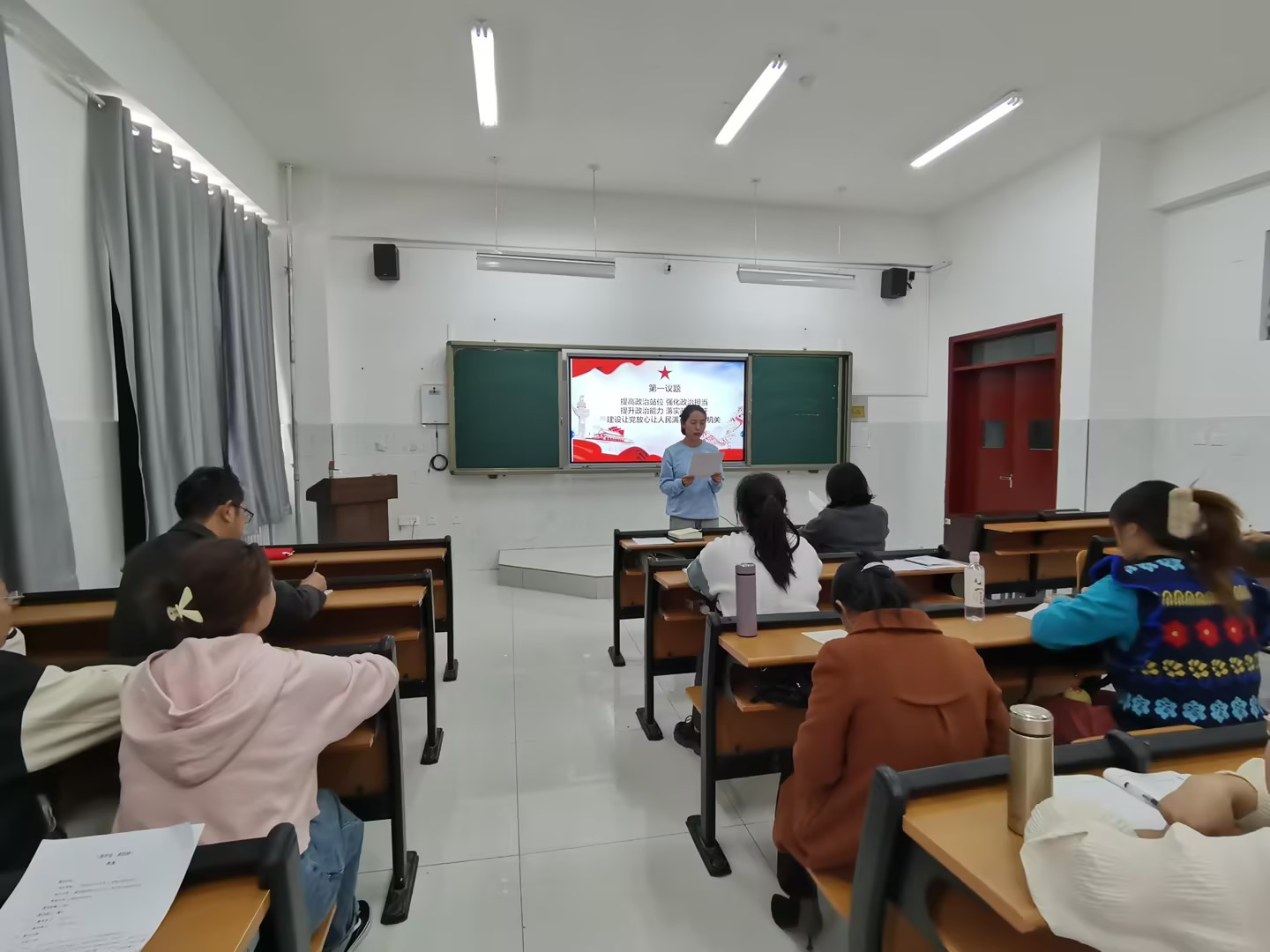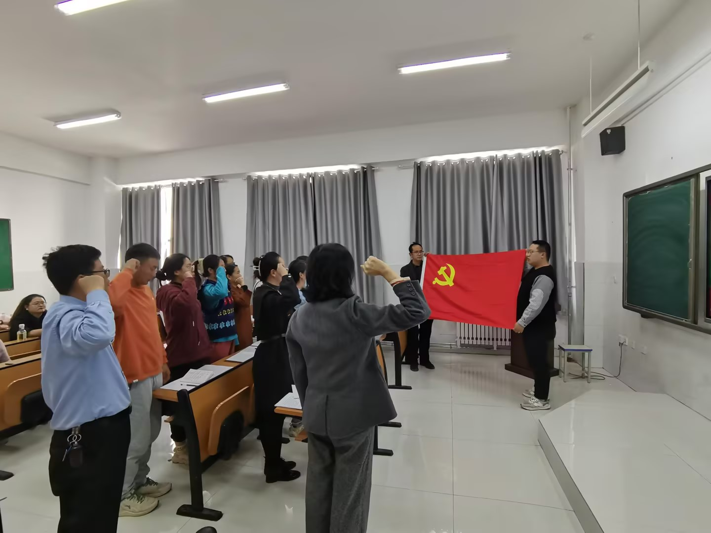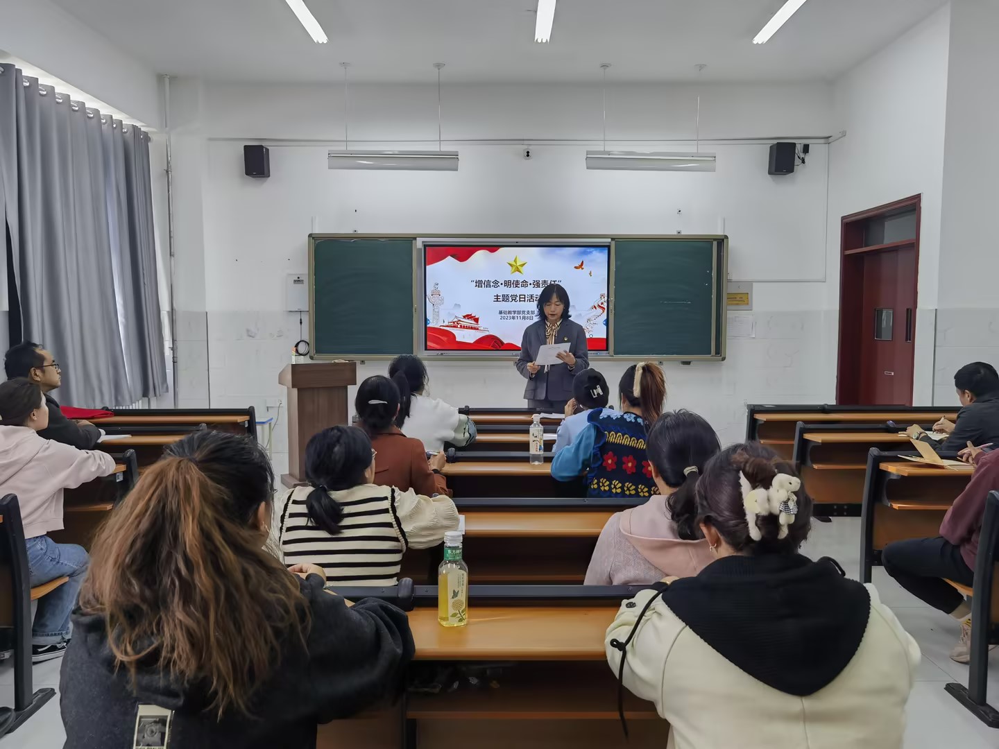 11月8日下午,在党员整齐的入党宣誓声中,Beat365中文官方网站基础教学部党支部的“增信念 明使命 强责任”主题党日活动正式开始。本次活动共有重温入党誓词、第一议题学习、学习诵读《党章》、宣传方针政策等七个环节。
