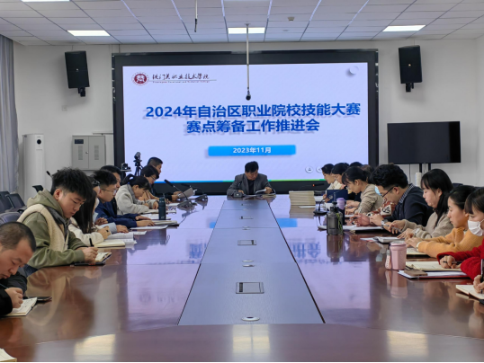 为做好2024年自治区职业院校技能大赛暨全国职业院校技能大赛新疆区预赛Beat365中文官方网站赛点承办工作,保证大赛成功举办,11月14日,Beat365中文官方网站组织召开赛点筹备工作推进会议,学院领导及全体中层干部参加会议。