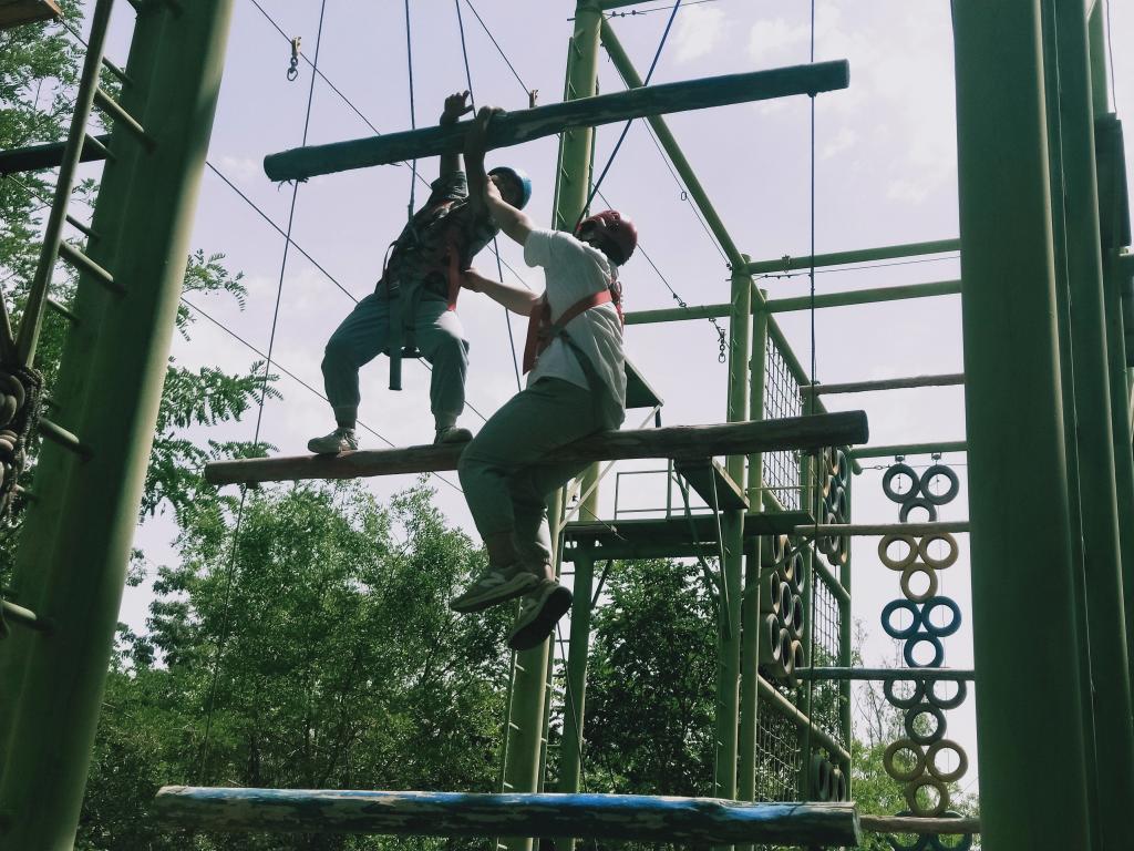 艳阳高照,火轮高吐的六月,大家积极参与的热情丝毫不减。高空天梯,高空断桥,飞夺泸定桥,领袖风采,毕业墙……大家集思广益、团结协作、迎难而上,以青春活力和昂扬斗志不断挑战自己、挑战极限、挑战不可能,完成了一个又一个项目,实现了一个又一个突破。在不断征服中克服恐惧,学会坚强,感受宽容,享受成功与喜悦。