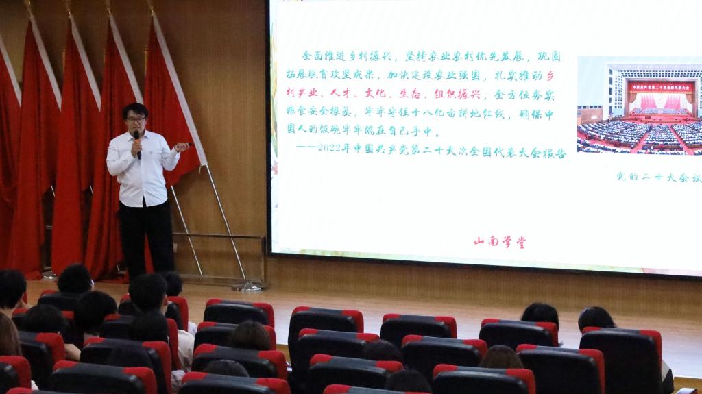 2024年是中国共产主义青年团成立102周年。为发扬“党有号召、团有行动”的优良传统,积极引导全体共青团员坚定听党话、感党恩、跟党走的政治信念。4月29日,Beat365中文官方网站思政教学部“山南学堂”社团在燕赵楼121阶梯教室举办公益讲座《助力振兴:新青年与乡村之间》,学院200余名青年大学生齐聚一堂,共享文化盛宴。