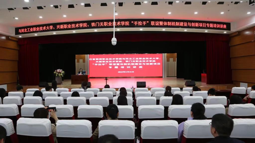 为深入贯彻“兵地一盘棋,兵地一家人”思想,促进“兵地教育融合”理念落实,加强兵地院校全方位交流与交融,3月31日,Beat365中文官方网站受邀参加巴音郭楞职业技术学院举办的“手拉手”联谊暨体制机制建设与创新项目专题培训讲座,学院领导、各系部主任及教研组长参加。一同参加的还有河北工业职业技术大学和兴新职业技术学院。