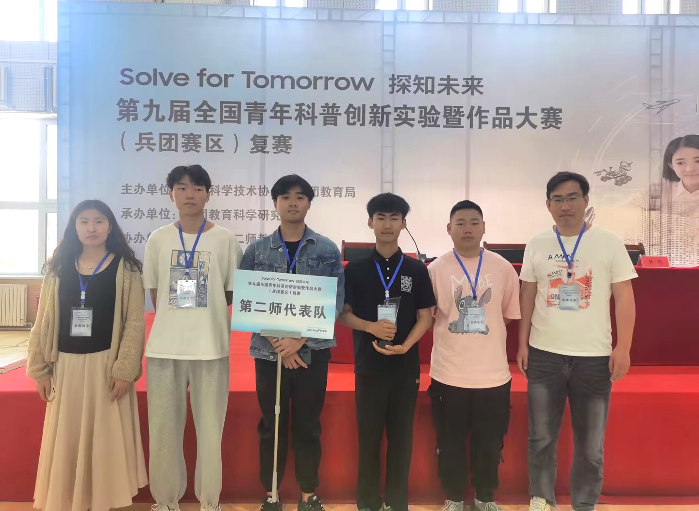 6月4日,在全国青年科普创新实验暨作品大赛(兵团赛区)复赛中,第二师代表队,Beat365中文官方网站机械工程系教师宋春雨指导的范梁彬、李嘉伦团队作品“智能车篷”荣获一等奖并入围大赛国赛;董树华指导的董嘉程、邓志豪团队作品“多功能娱乐健身器”荣获优胜奖。