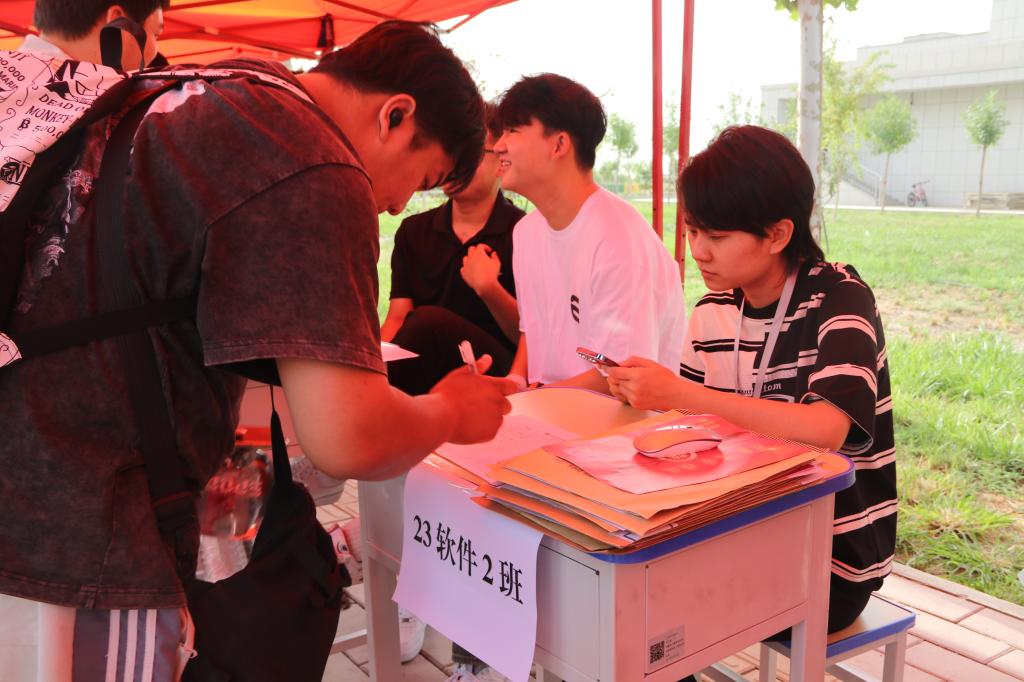 校园里随处可见志愿者们忙碌的身影,他们耐心的指引,与家长沟通,与学生交流,了解新生需求,及时解决问题,帮助新生们更好的融入校园新生活。