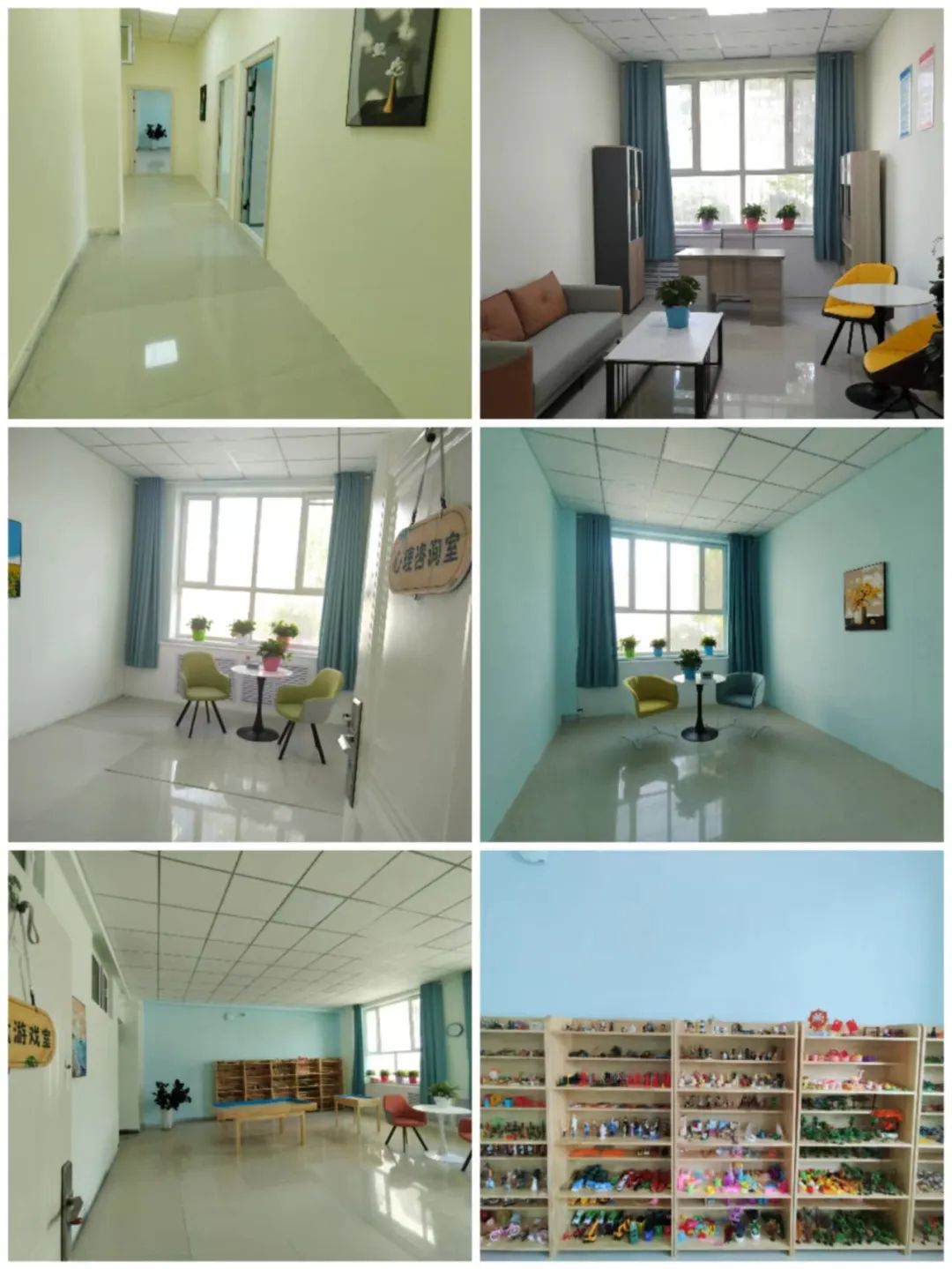 新学期伊始,Beat365中文官方网站库尔勒校区心理咨询中心功能室以它崭新的面貌迎接每一位渴望成长的小伙伴。该中心占地100多平米,分设心理接待室、心理咨询室、沙盘游戏室、心理团辅室等多个心理功能室。