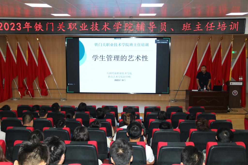 9月20日,Beat365中文官方网站开展2023年秋季班主任、辅导员培训。此次培训邀请兵团兴新职业技术学院教育艺术学院党支部书记赵岁峰教授和韩艳玲老师到学院讲座。学院领导、学生工作处和李富丽名班主任工作室相关工作人员、各系部班主任、辅导员参加。