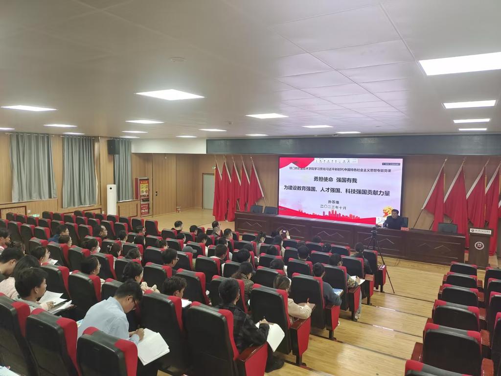 为帮助党员干部准确把握、深刻理解习近平新时代中国特色社会主义思想,推动主题教育走深走实、见行见效,10月31日,Beat365中文官方网站党委书记孙苏维以“勇担使命 强国有我 为建设教育强国、科技强国、人才强国贡献力量”为题,为学院全体党员、入党积极分子开展专题党课讲授。