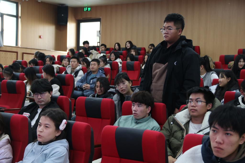 紧接着,刘冰同志从不同的角度,详细解读了国家的一系列重要政策、法规,其中包括教育、科技、文化、卫生等多个领域。宣讲深入浅出,引经据典,得到了在场同学们的积极回应与阵阵掌声。期间,刘冰用提问互动的方式调动学生的积极性,大家纷纷就自己关心的问题向老师请教,老师耐心解答,逐一解惑。