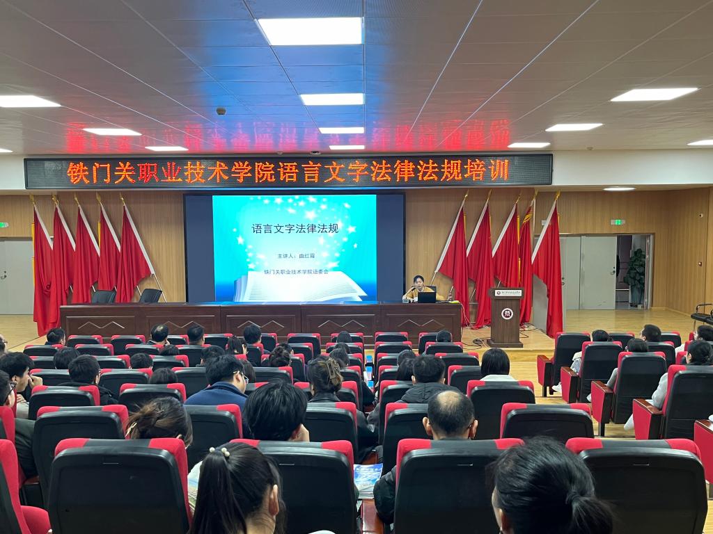 11月22日下午,Beat365中文官方网站在燕赵楼121阶梯教室开展语言文字法律法规培训,铁门关校区全体教师参加。