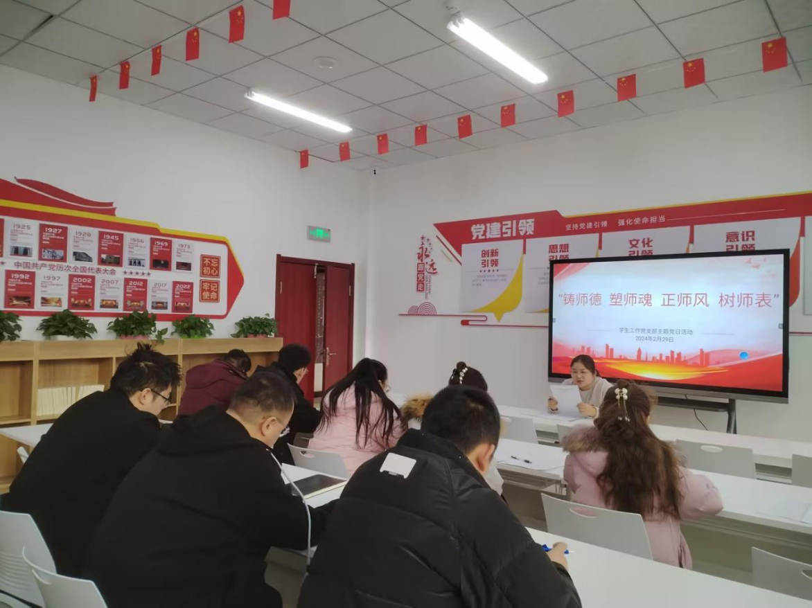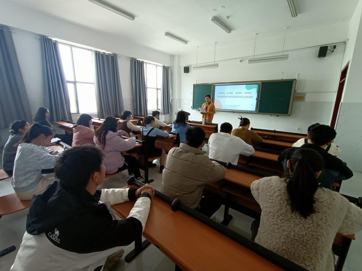 最后,各党支部、系部以“铸师德 塑师魂 正师风 树师表”为主题开展了师德师风研讨交流活动。研讨中学院教师抱诚守真、壮情抒怀,有的挖掘教育本质,有的探讨如何树立正确的教育观念,有的强调自觉遵守教师职业道德规范,有的提出要共同营造风清气正的教育环境。在你一言我一语的探讨与交流中,学院教师进一步认识到师德师风是创造教学成绩的基石,是赋能教学的源头活水,是成为“大先生”的道德标尺。