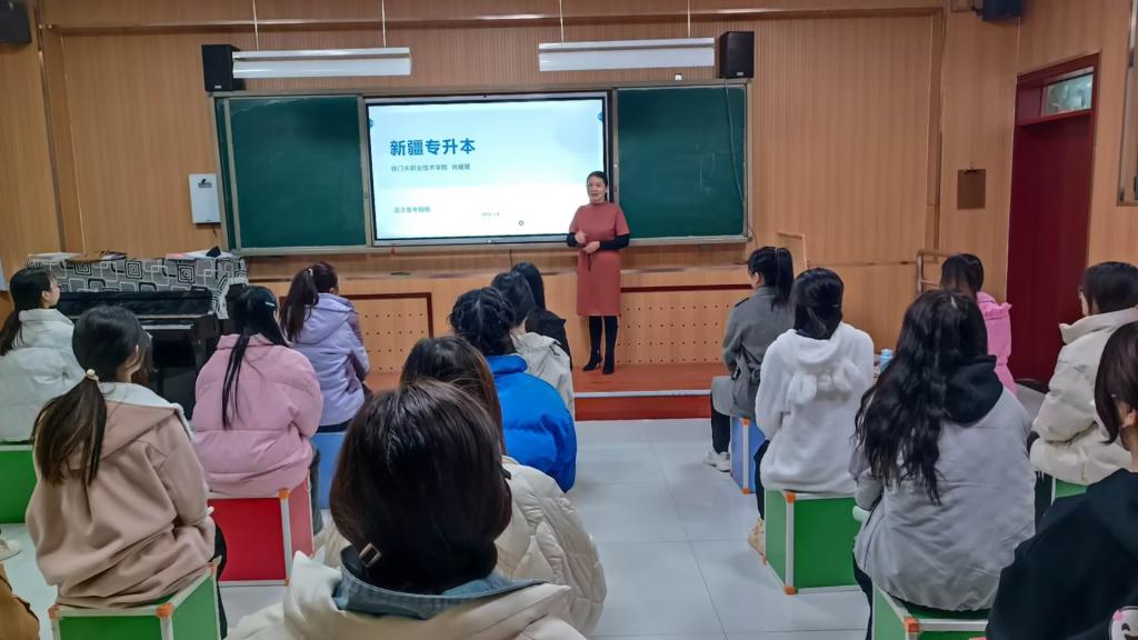 基础教学部教师肖媛媛结合自身丰富的教学经验,针对语文科目进行了备考指导。从专升本考试报名具体要求、新疆普通高校专升本《语文》考试大纲、新疆专升本《语文》考试题型及总分、专升本《语文》考试各题型讲解及专升本《语文》考试备考建议等方面给学生作了详细讲解,为其提供了实用的学习方法和复习策略。