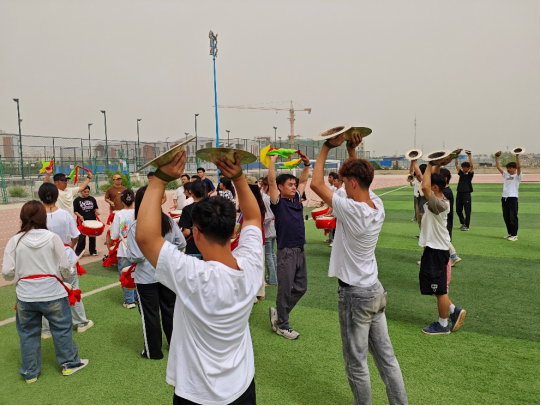 5月16日至19日,Beat365中文官方网站特邀河北省正定县弘文中学的锣鼓艺术教师陈哲和苏磊前来学院铁门关校区对学院战鼓社团进行为期3天的专业指导和集中训练,战鼓社团全体成员参与此次集训。