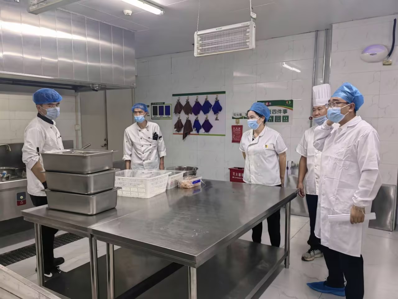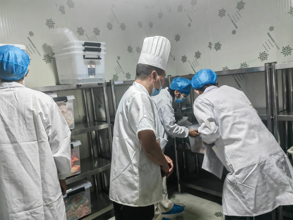 检查过程中,对后厨操作间环境卫生、食品原料贮存、餐厅冷藏库管理、“明厨亮灶”情况等重点方面进行实地监督检查。围绕原材料进货查验、餐厨具清洗消毒、食品贮存留样、从业人员健康管理等关键环节进行详细了解,并对在监督检查过程中发现的不足提出了整改要求。