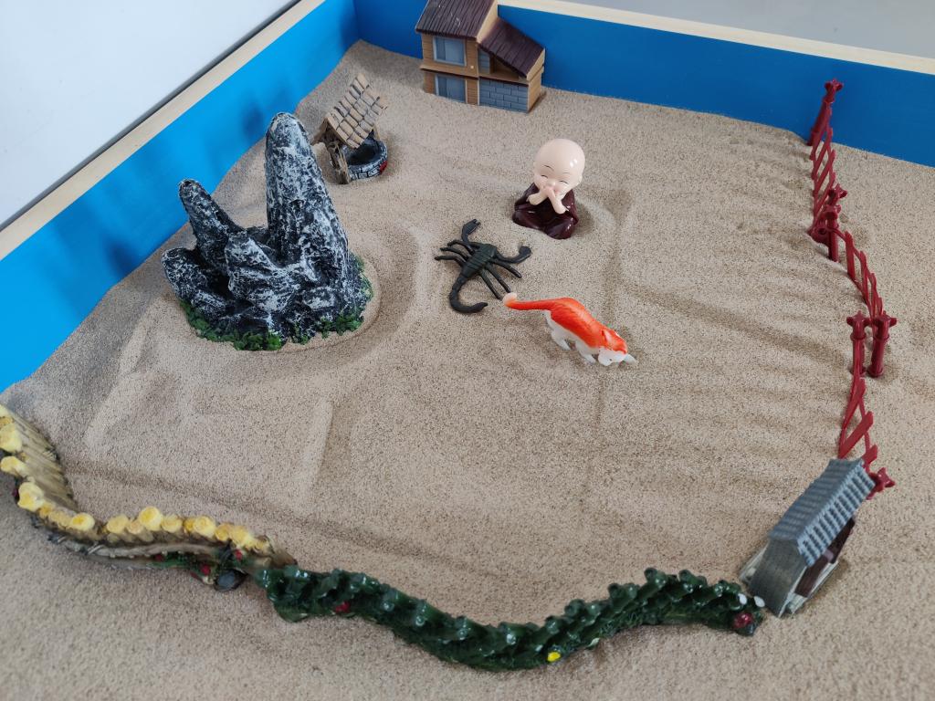 如果你并不想说太多,或者不知道该怎么表达自己的苦闷,没关系,我们还有心理沙盘室。在安全的环境,用2000件沙具,让你无拘无束的摆出“心中所想”。