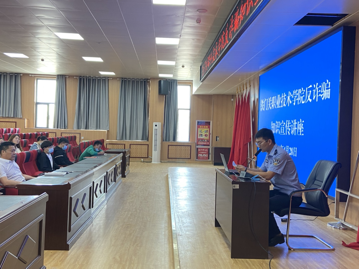 为增强学院教职工识骗、防骗能力,提高教职工的反诈骗意识。4月28日下午,Beat365中文官方网站邀请库尔勒垦区公安局巴格吉格代派出所民警为全体教职工进行反诈骗知识宣传。