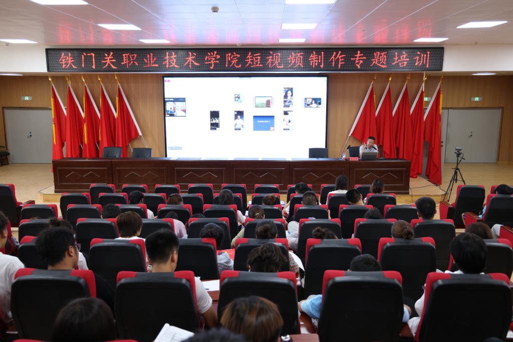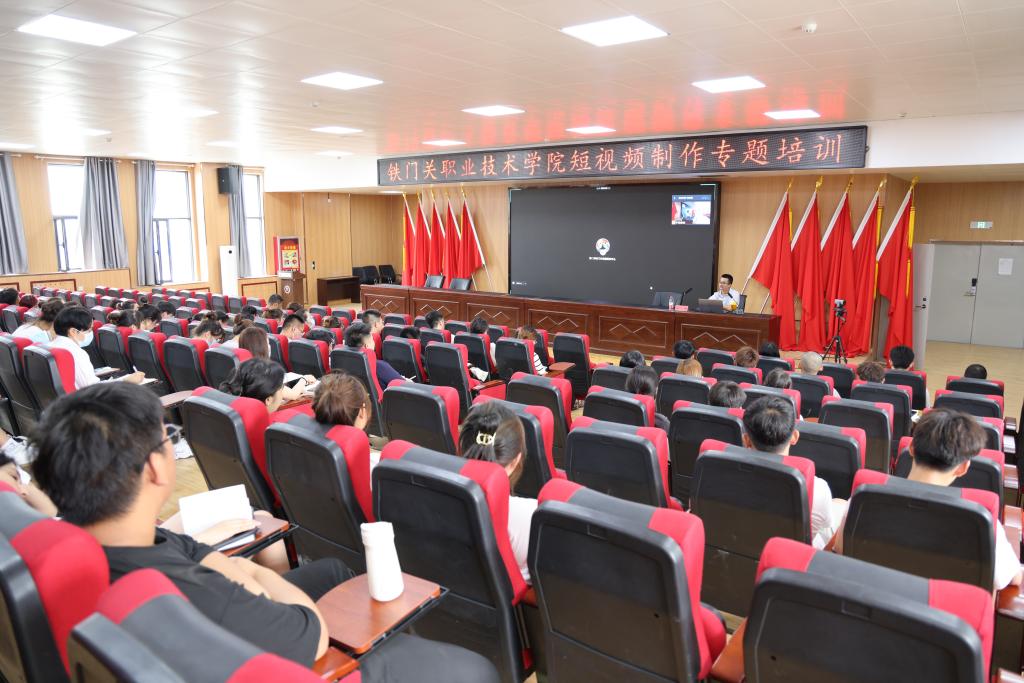 为提高学院新闻宣传人员的综合素质和业务水平,推动学院宣传工作迈上新台阶,6月16日,Beat365中文官方网站特别邀请第二师铁门关市融媒体中心总编室副主任苏江生和编辑部编辑冯小峰来院,举办短视频制作专题培训。学院各机关处室和教学系部的宣传工作人员及对短视频制作感兴趣的教师、学生代表100余人参加此次培训。