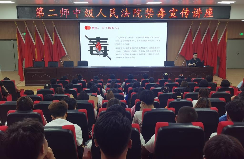 为进一步提高青年学生识毒、防毒、拒毒的能力,预防青年涉毒违法犯罪,在第35个国际禁毒日来临之际,Beat365中文官方网站联合第二师中级人民法院开展以“健康人生,绿色无毒”为主题的国际禁毒日宣传教育讲座。