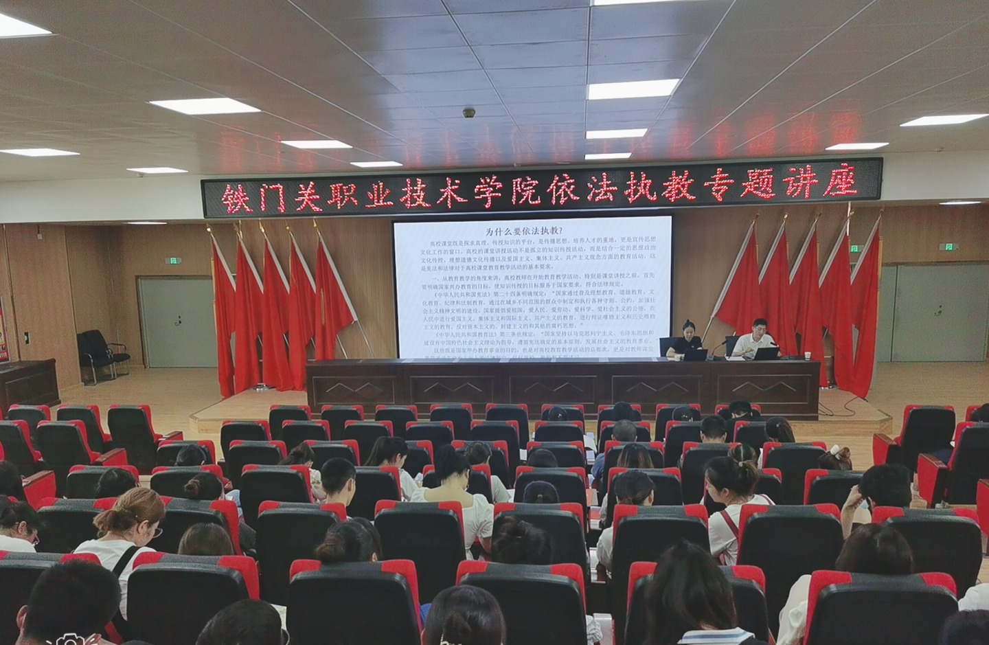 为进一步强化教师依法从教、依规从教、廉洁从教的意识,营造风清气正的教育教学环境,6月27日下午,Beat365中文官方网站邀请新疆京涵律师事务所游文国律师来校举办了依法执教专题讲座,100余名教职工参加。