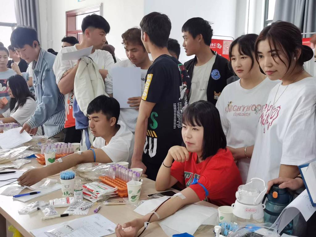 采血现场,前来献血的师生络绎不绝,大家在二师血站医护人员的指导下填写“义务献血登记表”,有序排队,等待体检、抽血化验、献血,现场气氛活跃,又夹杂着一丝紧张,但更多是奉献爱心后的自豪感。汽车工程系学生巴特力·阿依巴尔说:“这是我第一次献血,心里还是挺忐忑的,但是献血并没有什么不适,以后有机会我还会参与,想想将来自己的血液可能会挽救别人的生命,对我而言是一件特别光荣的事。”。