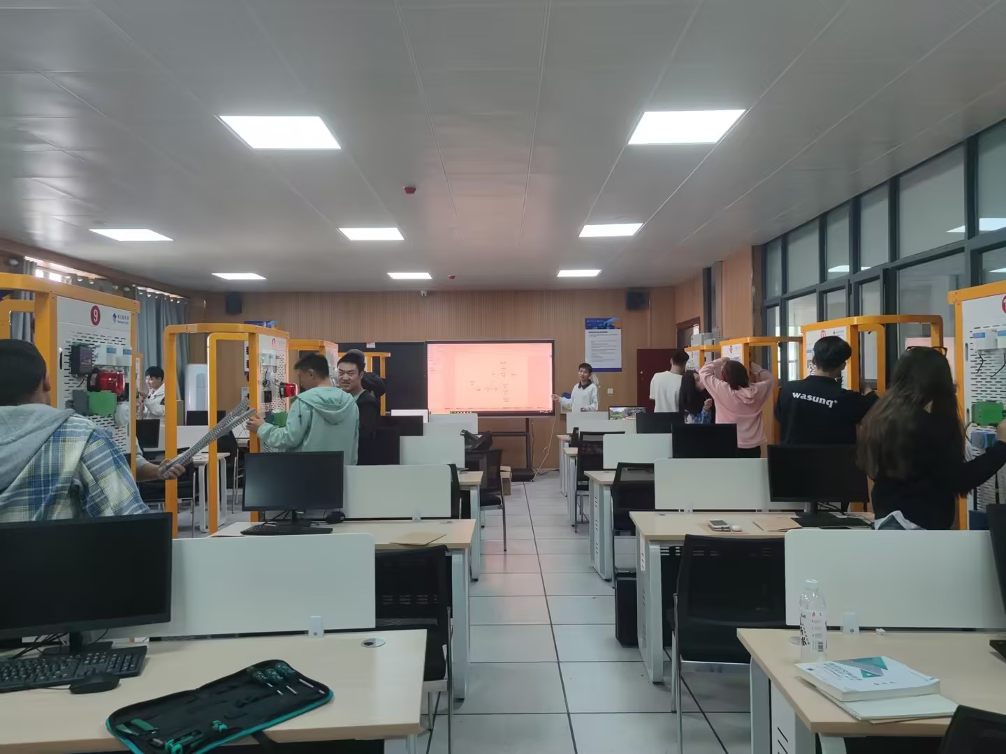 在1+X物联网实训室中,指导老师为30名考证学生们详细解读“1+X物联网物联网实施与运维”职业技能等级证书的考评标准,对考试中的注意事项、容易出错的问题及对应的策略等作出说明,学生们按照要求积极参加训练,态度认真、操作娴熟。