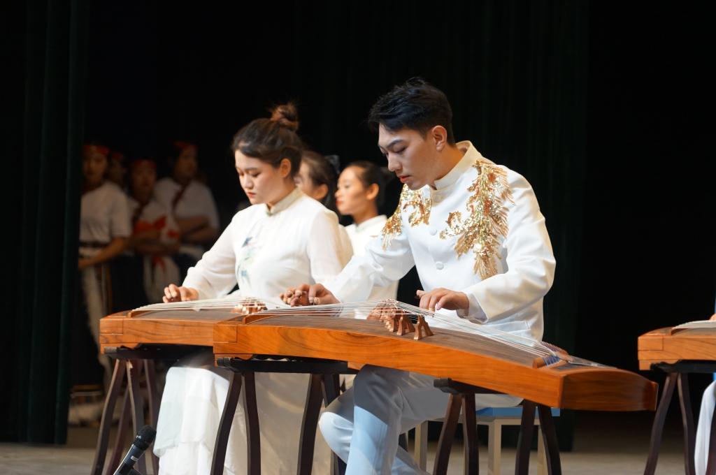 开场仪式后,演出正式开始。本场演出以青春正当时、奋进强国路、共筑复兴梦三个篇章展开,通过鲜明的主题向该系23级新生发出了“奋斗青春 强国有我”的号召。经过该系部层层筛选,最终有11个节目登上此次迎新汇演的舞台,包含民族舞、古筝合唱、诗歌朗诵、歌伴舞等,形式多样,体裁丰富。