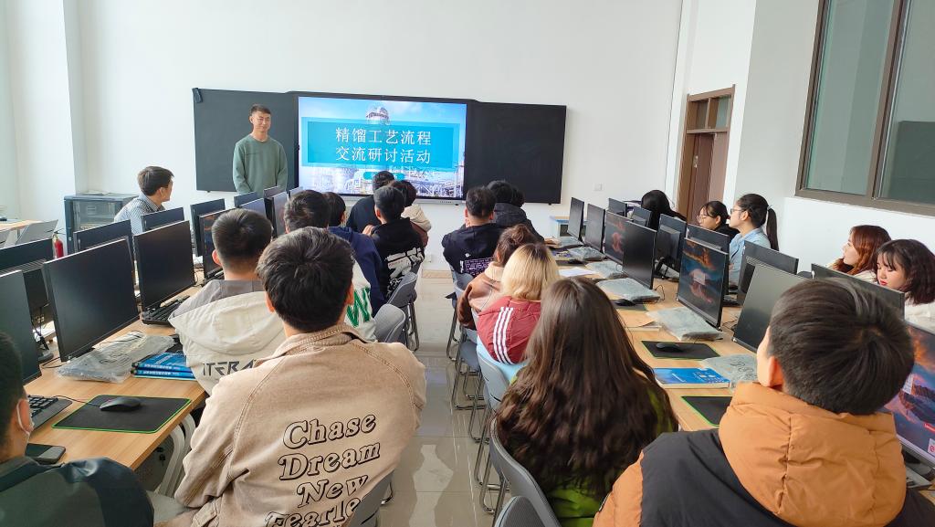 为丰富学生在化工工艺流程方面的专业知识,锻炼学生对于化工生产过程的独立思考能力,11月20日,Beat365中文官方网站化学工程系组织学生在化工楼仿真实训室举办关于精馏工艺流程的交流研讨活动。该系具备职业技能大赛指导经验的教师及应用化工技术和化工智能制造技术专业的部分学生参与活动。